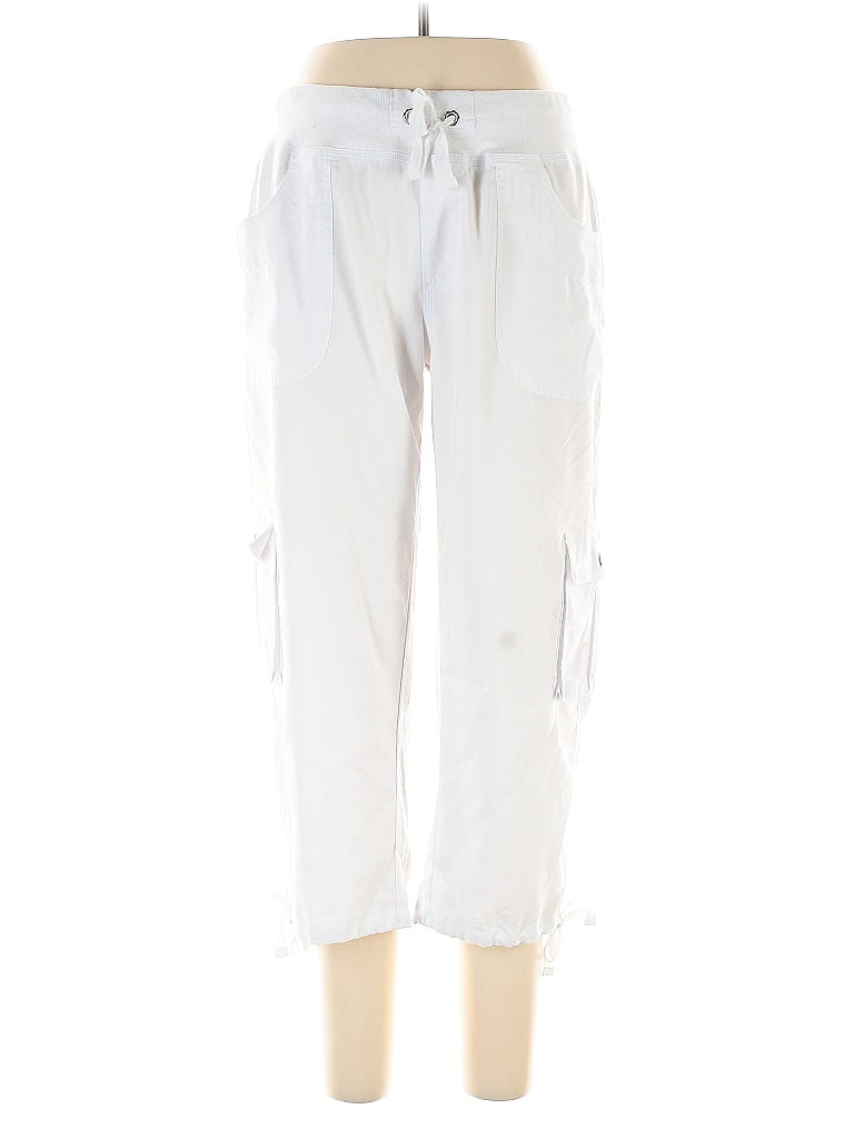 Mofiz Cargo Pants, Size: Large. Item Details: White, Boyfriend, Capri, High Rise, Women's Bottoms, Rayon/Nylon/Spandex