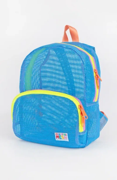 See your stuff with our see-through mesh backpack. A great sporty style as a daily bag, beach buddy, or festival companion. This small backpack features a large front pocket and main compartment with double zipper pulls. Super soft nylon top loop & strap webbing with adjustable backpack straps. Constructed with tear and mildew resistant 100% vinyl coated mesh. Made in Los Angeles, California. Tear and mildew resistant 100% vinyl coated mesh 13" height, 10" width, 6" depth Main compartment Capacity- 5.5L Hand wash, air dry Do not machine dry Keep away from any harsh detergents, stain removers, and bleach. Please note: All bright colors are sensitive to UV rays from the sun and will naturally fade over time.