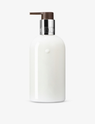 Molton Brown whisks your morning grooming regime away to a spot in the fresh sea air, metaphorically, of course. Inspired by the coast, the label blends Australian sea fennel, salted cypress, and spicy cardamom with a hint of jasmine to create the Coastal Cypress and Sea Fennel hand lotion. Formulated without parabens, the vegan cruelty-free formula nourishes the hands and leaves them subtly scented.| Molton Brown Coastal Cypress and Sea Fennel hand lotion 300mlApplication: use after the matching liquid hand wash to enhance the aromatic notesSkin type: suitable for all skin typesFragrance family: an invigorating medley of refreshing marine notes, salted blue cypress and bold cardamon. Use after the matching fine liquid hand wash to enhance the aromatic notesTop notes: fig leaves, cardamom and bergamotHeart notes: marine notes, jasmine and violet leafBase notes: salted cypress, cedarwood and musksVeganCruelty-freeFree from: parabens300mlMade in the UKFor hygiene reasons, this product cannot be exchanged or refunded, unless faulty.