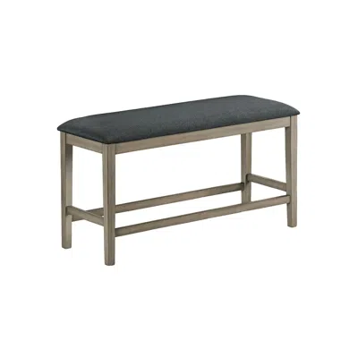 Step up your dining room or kitchen game with this fashionable 46" rectangular bench in antique grey with solid wood legs. Upholstered in a chic black fabric, the foam cushioned padded seat is not only comfortable but also durably designed for long-lasting use. Easy to assemble with the illustrated instructions included and with a 2 year limited warranty against manufacturer defects, this bench is as practical as it is stylish. The transitional design of this bench seamlessly blends with any decor. Pair it with a matching counter height dining table (sold separately) and create an impressive dining space with fashionable style for you and your guests.
