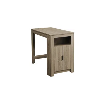 Introducing our sleek and stylish 48" rectangular dining table in trendy wood-look taupe brown laminate on all sides with plenty of storage options. Perfect for casual dining or entertaining, this counter height table is durably designed for everyday use. With its fashionable style and contemporary look, this dining table will elevate any kitchen or dining space. It features an open small storage shelf underneath plus a closed cabinet with 2 fixed storage shelves inside for added functionality. The easy to clean top makes it a breeze to maintain, ensuring this modern piece will look great for years to come. Designed with convenience in mind, this counter height dining table is easy to assemble with all parts and assembly instructions included. Backed by a 2 year limited warranty, you can trust in the quality and durability of this must-have piece for your home. Add some matching stools (sold separately) and upgrade your dining area with our white counter height dining table today!