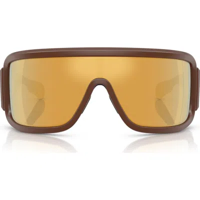 MONCLER 142mm Rectangular Shield Sunglasses In Brown