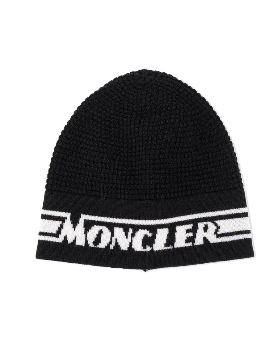 MONCLER Kids' Black Logo Knitted Pullover Hat
