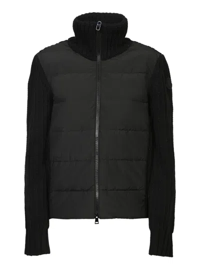 Cardigan featuring a quilted down front panel, ribbed wool long sleeves, high collar and zip closure.A perfect blend of functionality and style, this Moncler cardigan is ideal for winter. It delivers warmth without sacrificing elegance, owing to its innovative design and high-quality materials.