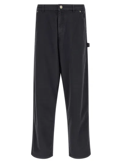 Cargo pants in cotton blend gabardine with pockets, wide and straight leg, front zip and button closure, and felt logo patch on the back. Composition: 98% cotton, 2% elastane