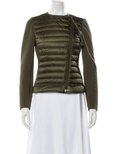 Moncler Down Jacket Green Grosgrain Trim & Collarless Zip Pockets & Zip Closure Fit: Jackets by Moncler typically fit true to size. | Moncler Down Jacket in Green, Women's S