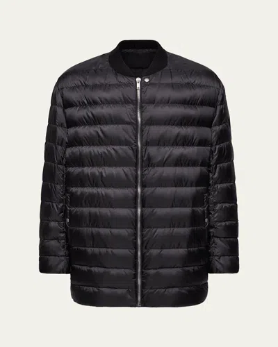 A futuristic take on a classic bomber, the "Flight" down parka jacket from the DRKSHDW RICK OWENS x Moncler collaboration collection is crafted from ultralight polyester with wool knit trim and features a signature combo logo embroidered on the left arm Baseball collar; zipper front Long curved sleeves; ribbed cuffs Hip snapwelt pockets Inner zipped pocket Straight fit Hem falls below the hip Straight hem Polyester Lining: Polyester Fill: Goose feather/down Made in Romania