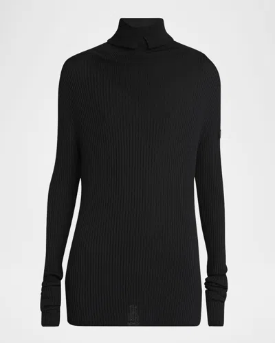 An elevated coldweather staple from the Moncler Genius and Edward Enninful collaboration collection, crafted from a soft ribbed wool. Features a signature logo patch on the left sleeve Foldover turtleneck Dropped shoulders Long sleeves Slim fit Hem sits at the hip Pullover style Virgin wool Dry clean Made in Italy