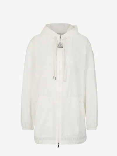Jacket by Moncler Technical polyamide fabric Two-way zipper closure Rounded collar Integrated hood Openwork embroidery Two exterior pockets Elastic cuffs Hood and hem adjustable by drawstring Embroidered logo on the backEmbroidered logo patch on the sleeveMade in RumaníaBack length: 77 cm100% Polyamide Lining: 100% Polyester