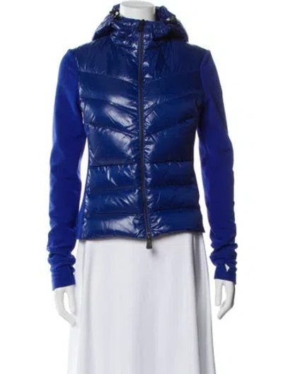Moncler Jacket Blue With Hood Stand Collar Zip Closure Fit: Jackets by Moncler typically fit true to size. | Moncler Jacket in Blue, Women's M