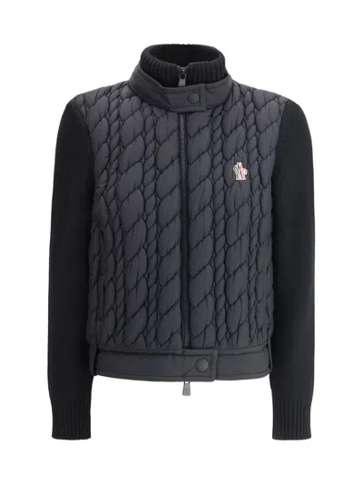 Ideal on its own or combined with other garments for added warmth, this wool cardigan is perfect for leisure time in the mountains. The turtleneck features a front padded with longue saison, a nylon fabric that protects against the cold without sacrificing lightness. - Made of ultra-fine wool and longue saison - Stockinette stitch - Gauge 5 - Nylon lining - Padding on neck, front and lower back - Ribbed knit turtleneck - Zip closure - Windproof pockets with button closure - Embroidered logo DESIGNER ID: J20989B00007M1131 999