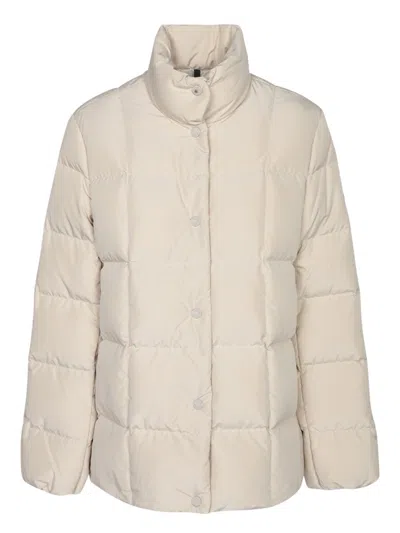 Padded jacket with button closure. High collar. Timeless design.. Explore winter elegance with Moncler's Cochevinne Jacket. Crafted for sublime comfort and style that transcends seasons, this piece stands out with its versatile neutral color and clean, modern silhouette