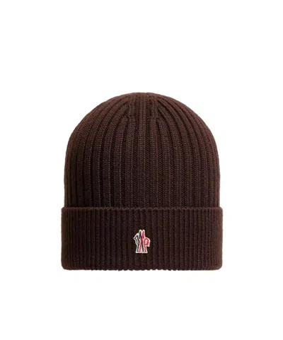 MONCLER L Beanie Hat With Logo Patch In Brown