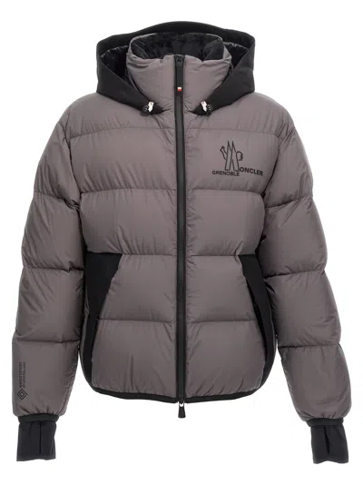 Moncler Grenoble mens Marcassin down jacket made of grey quilted nylon and featuring a lined interior, down padding, double-slider zip fastening, adjustable and removable hood, high collar with fleece lining, side pockets, long sleeves with stretch cuffs with thumbholes, windproof gaiter on the bottom of the garment. Garment finished with a contrasting Moncler Grenoble logo on the left side of the chest. Composition: 1 MATERIAL: 100%POLYESTER - 2 MATERIAL: 17%ELASTANE + 83% POLYAMIDE/NYLON - BASE FABRIC: 100%POLYAMIDE/NYLON LINING: 100%POLYESTER - COLLAR LINING: 97%POLYESTER + 3% ELASTANE - DETAILS PADDING: 100%POLYESTER