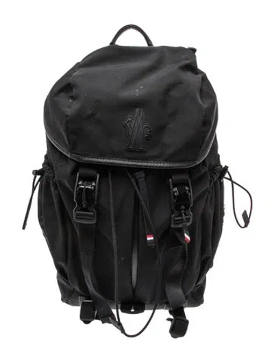 Moncler Backpack Black Nylon Tonal Hardware Flat Handle & Dual Adjustable Shoulder Straps Four Exterior Pockets Nylon Lining & Single Interior Pocket Flap Closure at Top & Drawstring Closure at Front | Moncler Nylon Backpack in Black