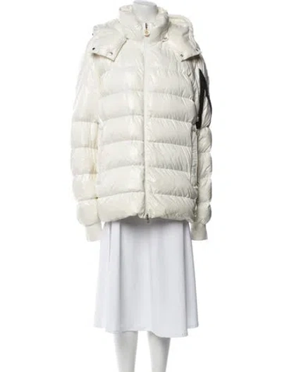 Moncler Nylon Down Jacket Neutrals With Hood Stand Collar Zip Pockets & Zip Closure Fit: Jackets by Moncler typically fit true to size. | Moncler Nylon Down Jacket in Neutrals, Women's M
