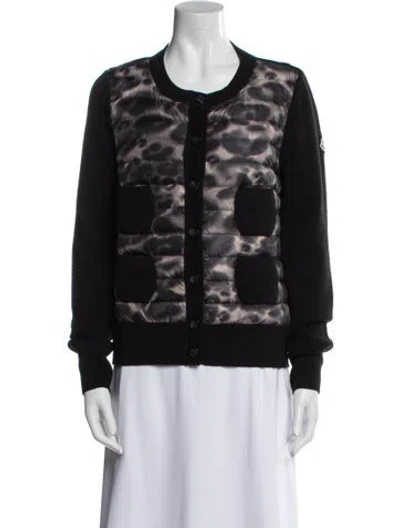 Moncler Down Jacket Black Printed Collarless Patch Pockets & Button Closure Fit: Jackets by Moncler typically fit true to size. | Moncler Printed Down Jacket in Black, Women's L