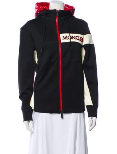 Moncler Grenoble Poncho Blue Printed With Hood Signature Logo Stand Collar Zip Closure Fit: Jackets by Moncler typically fit true to size. | Moncler Grenoble Printed Poncho in Blue, Women's S