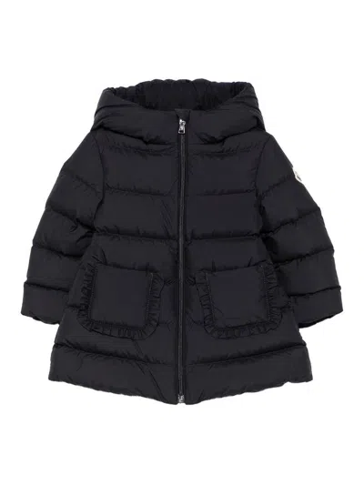 Moncler Kids' navy blue 'Molan' long down jacket with hood for baby girls Cut: 12/18M, 18/24M, 2Y, 3Y