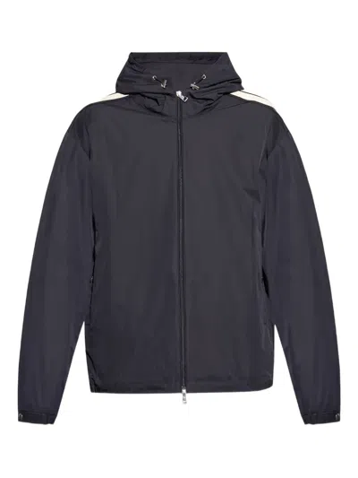 black front zip fastening drawstring hood two side zip-fastening pockets long sleeves