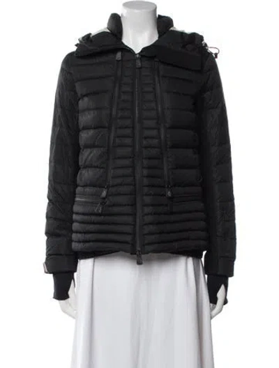 Moncler Grenoble Down Jacket Black Striped With Hood Embroidered Accent & Stand Collar Zip Pockets & Zip Closure Designer size 1. Fit: Jackets by Moncler typically fit true to size. | Moncler Grenoble Striped Down Jacket in Black, Women's S
