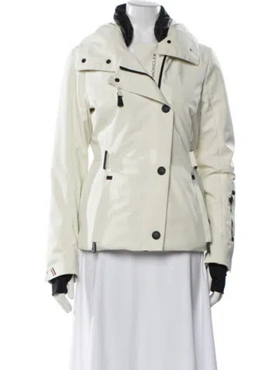 Moncler Grenoble Utility Jacket White With Hood Pointed Collar Zip Pockets & Zip Closure Designer size 1. Fit: Jackets by Moncler typically fit true to size. | Moncler Grenoble Utility Jacket in White, Women's S
