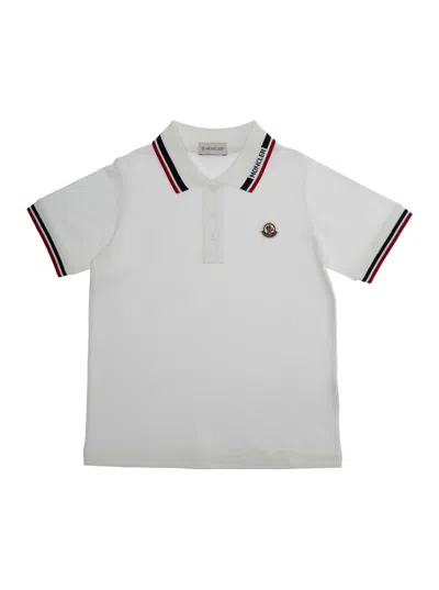 MONCLER Kids' White Polo With Lettering Logo On The Collar And Logo Patch On The Chest In Cotton Boy