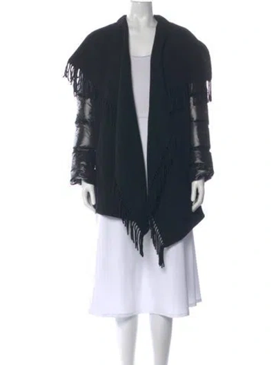 Moncler Wool Cardigan Blue Fringe Trim Accent Long Sleeve with Open Front Designer Fit: Sweaters by Moncler typically fit true to size. | Moncler Wool Open Front Sweater in Blue, Women's S