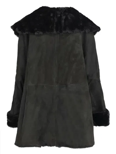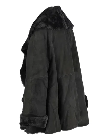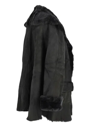 Pre-owned Shearling Open-front Jacket In Black