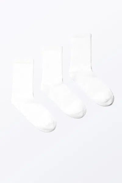 A 3-pack of ribbed socks crafted from soft cotton and recycled polyester enhanced with a touch of elastane for extra stretch and comfort. They have a smooth instep and reinforced toes and heels.