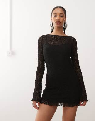 MONKI Long Sleeve Lace Mini Dress In Black