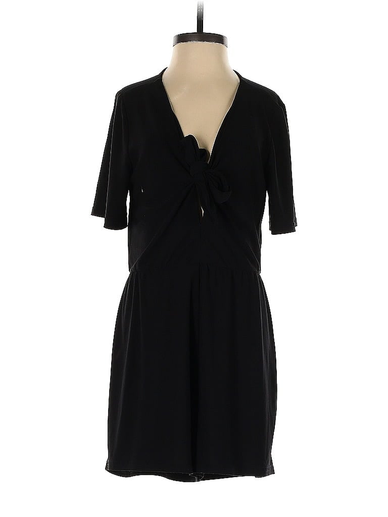 Monki Romper, Size: X-Small. Item Details: Black, Solid Pattern, V-Neck, Skinny Leg, Short Sleeve, Bows, Women's Dresses, Polyester/Elastane