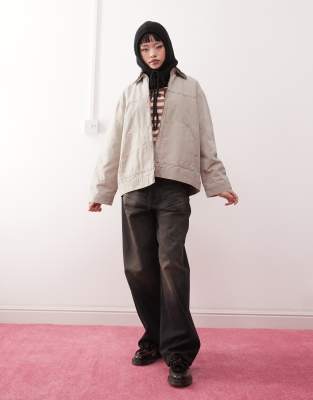 MONKI Short Canvas Jacket With Cord Collar In Neutral
