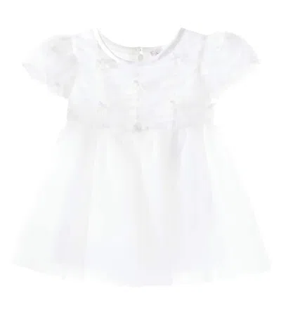 MONNALISA Baby Bow-detail Ruched Tulle Dress In Yellow Cream