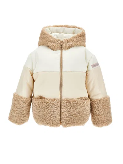 MONNALISA Kids' Patchwork Down Jacket With Zip And Hood In Brown