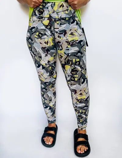 You'll be reaching for this best-selling legging all season long.High-waisted leggings are ankle length, feature a discreet waistband pocket, and have an all-over abstract print with a Ben-Day pattern. 76% nylon, 24% spandex. Tummy control.
