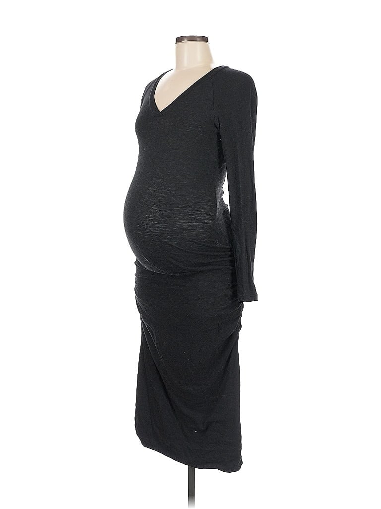 Monrow Casual Dress, Size: Medium. Item Details: Black, V Neck, Midi/Calf Length, Long Sleeve, Women's Dresses, Polyester/Cotton/Rayon