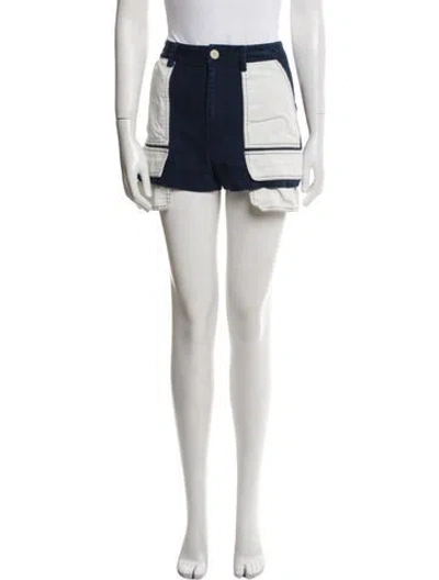 Monse Shorts Blue & White Colorblock Pattern High-Rise Fit: Shorts by Monse typically fit true to size. | Monse Colorblock Pattern Mini Shorts in Blue/White, Women's M