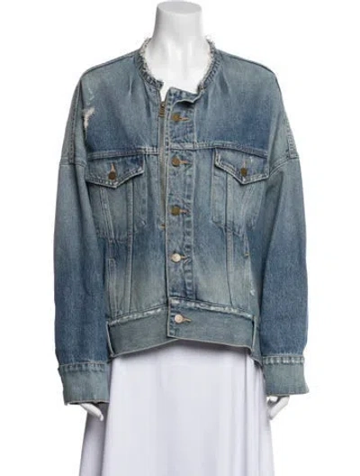 Monse Denim Jacket Blue Distressed Accents & Pointed Collar Patch Pockets & Button Closure Designer Fit: Jackets by Monse typically fit true to size. | Monse Denim Jacket in Blue, Women's S