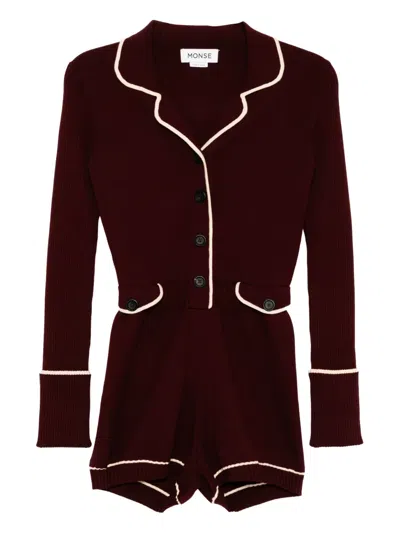 burgundy short front button fastening ribbed waistband rolled cuffs ribbed hem