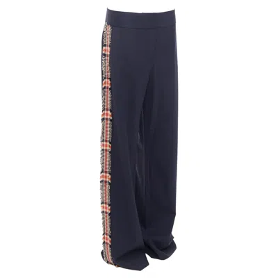 Virgin Wool Blend Plaid Side Trim Wide Trousers In Blue