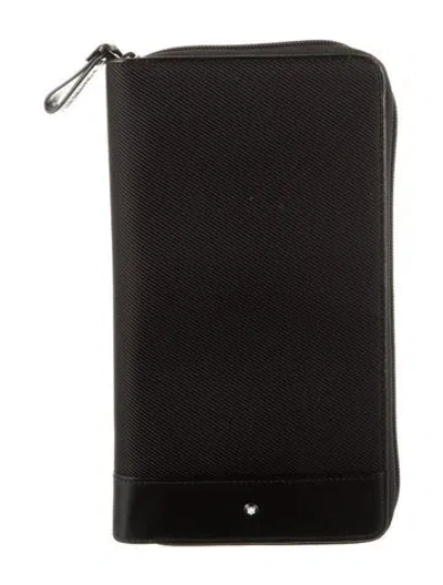 Montblanc Wallet Black Canvas Tonal Hardware Leather Lining & Three Interior Pockets with Card Slots Exposed Zip Closure | Montblanc Canvas Wallet in Black