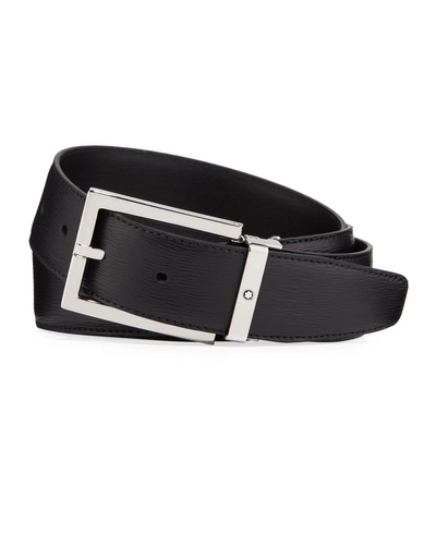 MONTBLANC Mens Black Rectangular Buckle Leather Belt