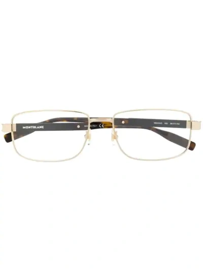 Gold-tone and brown acetate and metal rectangular frame glasses from Montblanc featuring a logo at the temple, tortoiseshell arms and straight arms with curved tips. This item comes with a protective case.