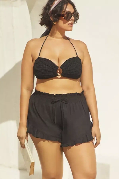 Cotton Pull-on styling Hand wash Imported Boho Drawstring Ruffle Shorts by Montce in Black, Women's, Size: 3 X , Cottonat Anthropologie
