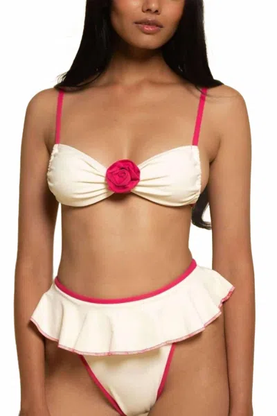 This top offers light support with adjustable shoulder straps and a tie-back closure for a customizable fit. Designed to minimize tan lines, it features no padding for a natural look, while a fixed fabric flower tacked at the center front adds a charming detail. Perfect for sunny days by the pool or beach, this piece combines style and comfort effortlessly. To care for the fabric, avoid leaving it rolled up, twisting, or wringing it out, and do not leave it wet for extended periods. Protect the fabric from rough surfaces, suntan lotions/oils, and harsh chemicals found in pools or spas, and always refer to garment tags for specific care instructions. For washing, hand wash in cold water with mild soap, lay flat to dry in the shade, and never tumble dry, dry clean, iron, or bleach.