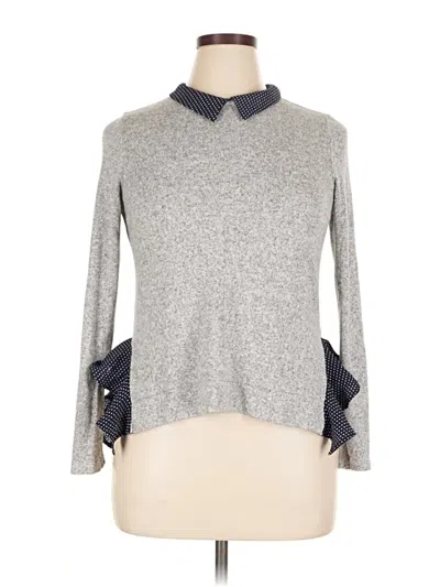 Monteau Pullover Sweater, Size: X-Large. Item Details: Gray, Tie Neck, Long Sleeve, Peplum, Junior Tops, Rayon/Polyester/Spandex