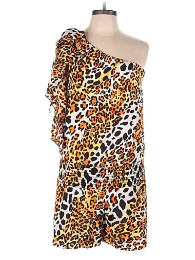 Monteau Romper, Size: Large. Item Details: Orange, Animal Print Pattern, One Shoulder Neckline, Skinny Leg, Short Sleeve, Ruffles, Junior Dresses