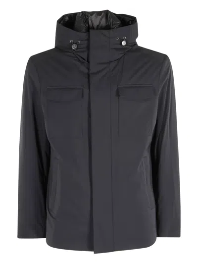 MONTECORE Medium-length Water-repellent Jacket With Adjustable Hood In Black