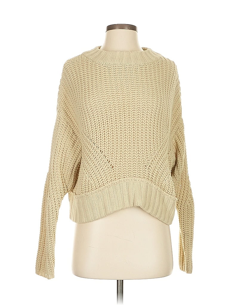 Moon & Madison Pullover Sweater, Size: X-Small. Item Details: Tan, Solid Pattern, Strapless Neckline, Long Sleeve, Cut Outs, Women's Tops, 100% Acrylic